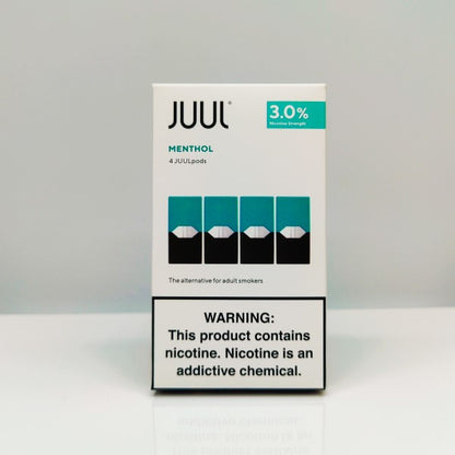 A package of twos or four premium-quality JUUL salt e-liquid pods in a cool and satisfying menthol flavor